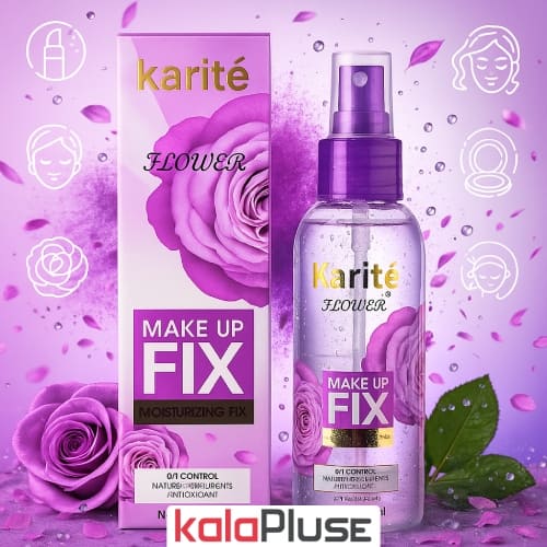اسپری فیکس آرایش KARITE با رایحه گل رز آرایشتان را در طول روز ثابت و معمولاً برای ثابت کردن کرم پودر، رژلب، رژگونه و سایر محصولات آرایشی استفاده می گردد.