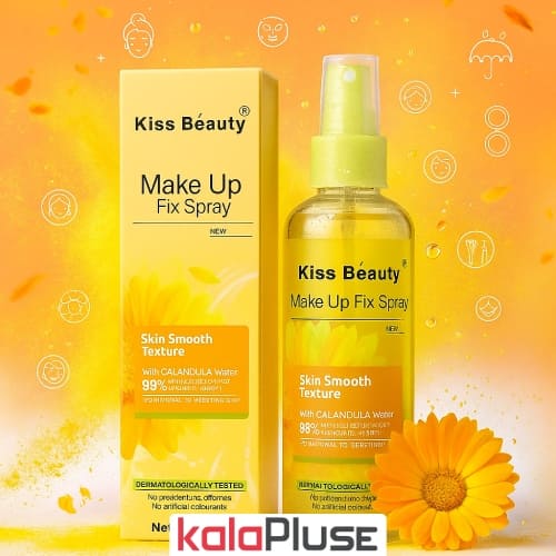 اسپری فیکس آرایش Kiss Beauty رایحه کالاندولا فاقد پارابن بوده و می تواند باعث تثبیت آرایش صورت بر روی پوست شده و دوام مواد آرایشی را بالا ببرد.