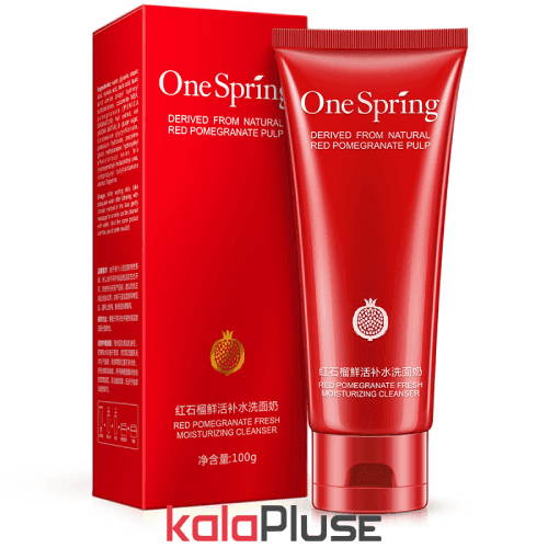 فوم شست و شوی صورت انار وان اسپرینگ از عصاره انار قرمز تهیه شده است که باعث کوچک تر شدن منافذ و افزایش شفافیت پوست می شود. عصاره انار سرشار از آنتی اکسیدان هست که باعث می شود از بروز چین و چروک در سنین پایین جلوگیری شود.