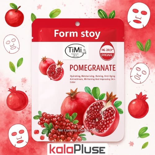 ماسک صورت ورقه ای ضد لک انار FORM STOY باعث روشن شدن رنگ پوست شده و برای پوست های خسته و کدر مناسب است انار دارای آنتی اکسیدان بسیار قوی است.