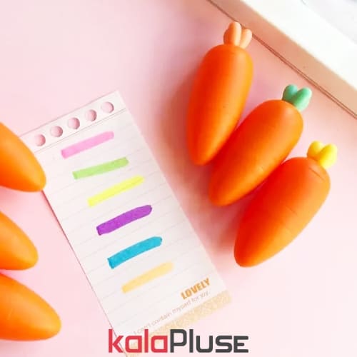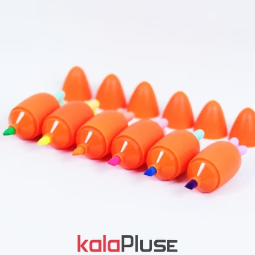 • ماژیک هایلایتر هویجی 6 رنگ دارای رنگ های بنفش،زرد، کلبهی، صورتی، سبزآبی و سبز و اندازه پک: 18*9 سانتی متر و نیز پک 6 عددی میباشد.