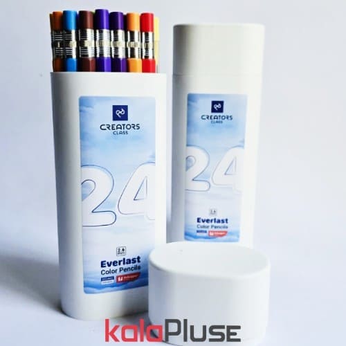 دارای 24 رنگ نوع فشاری دارای تراش مخزن دار دارای جعبه پلاستیکی نوک قابل تعویض ضخامت نوک 2.6 میلیمتر