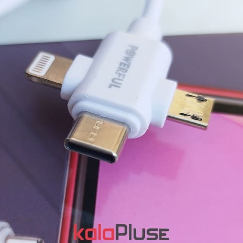 کابل فست شارژ سه کاره powerful از پورت های لایتنینگ ، تایپ سی و میکرو برخوردار بوده و طول آن 120 سانتی است که برای استفاده روزانه گزینه مناسبی می باشد.
