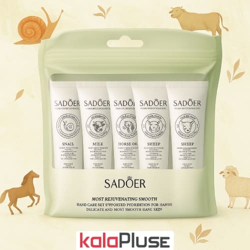 کرم 5 تایی SADOER با رایحه شیر حیوانات کرم غنی شده با نرم کننده های طبیعی می باشد و دارای فرمولاسیون قوی جوانساز هست که موجب آبرسانی و لطافت دست می شود.